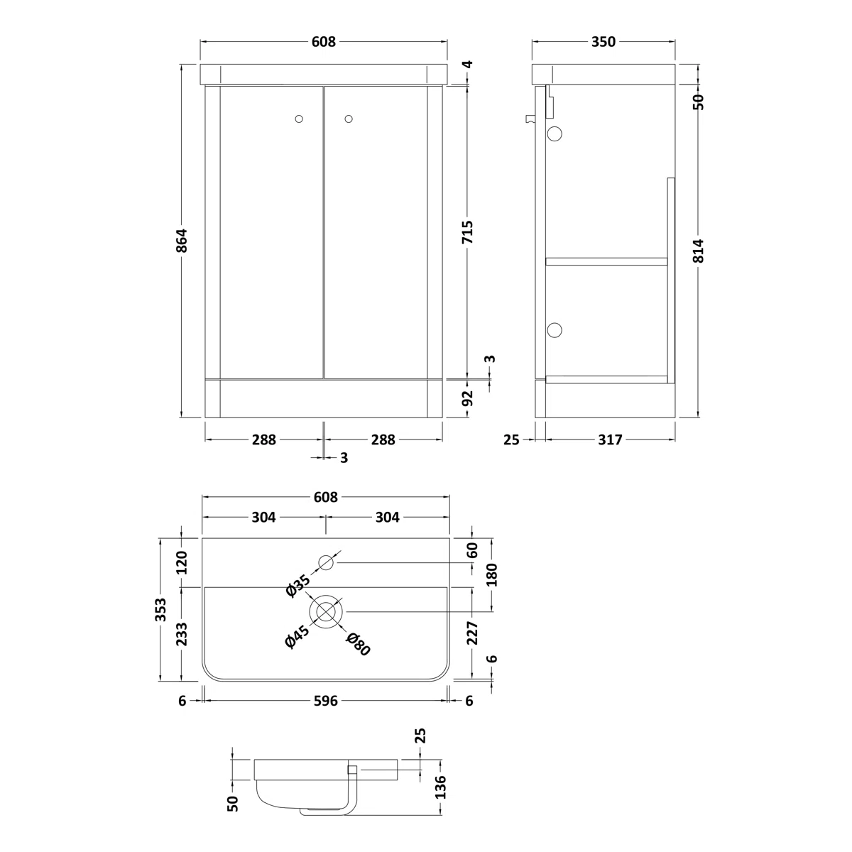 Core 605mm Single Bathroom Vanity with Integrated Vitreous China Basin