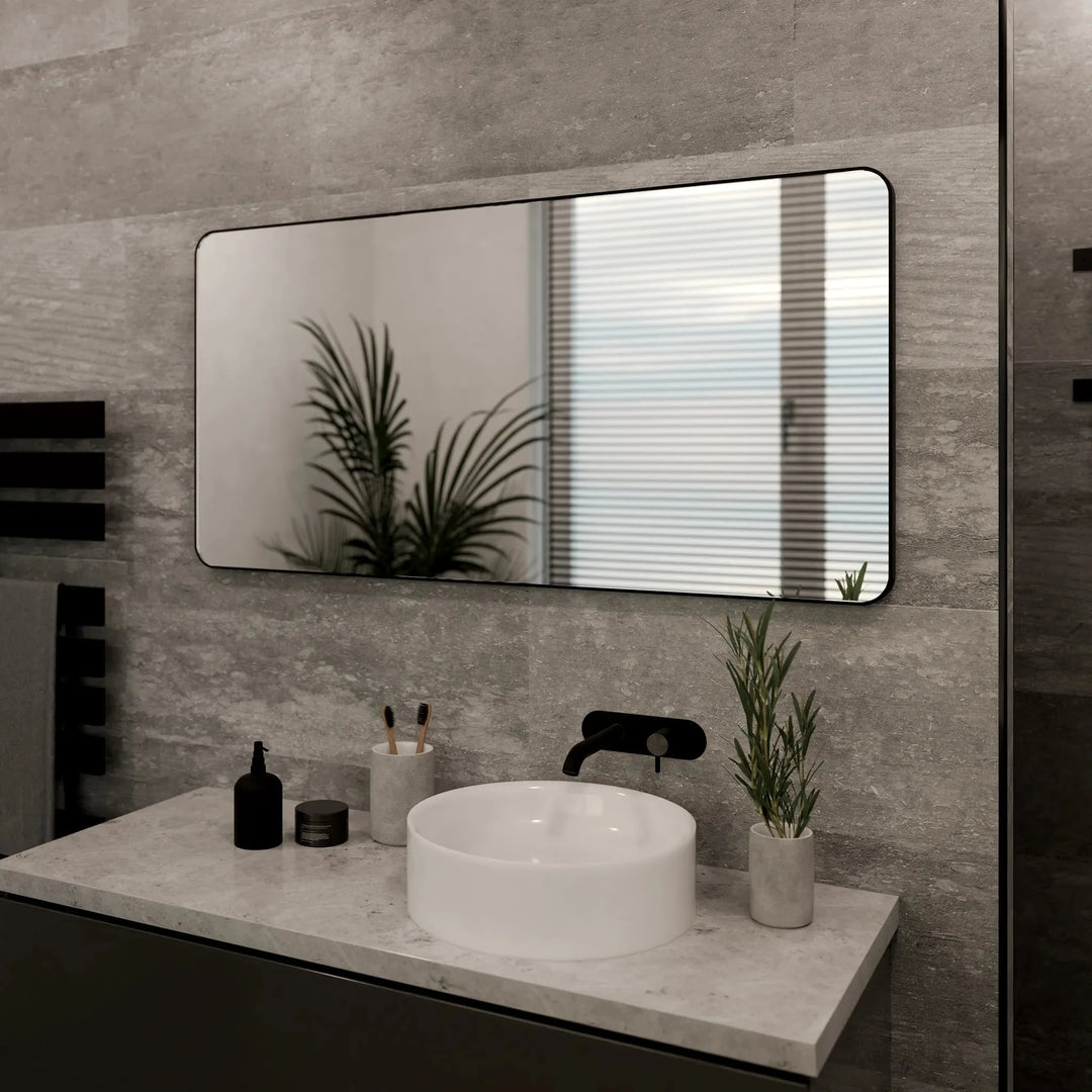Complement your modern bathroom with the minimalist Jett mirror. The rectangular frame sits behind the mirror glass, helping to give the illusion of a larger bathroom.